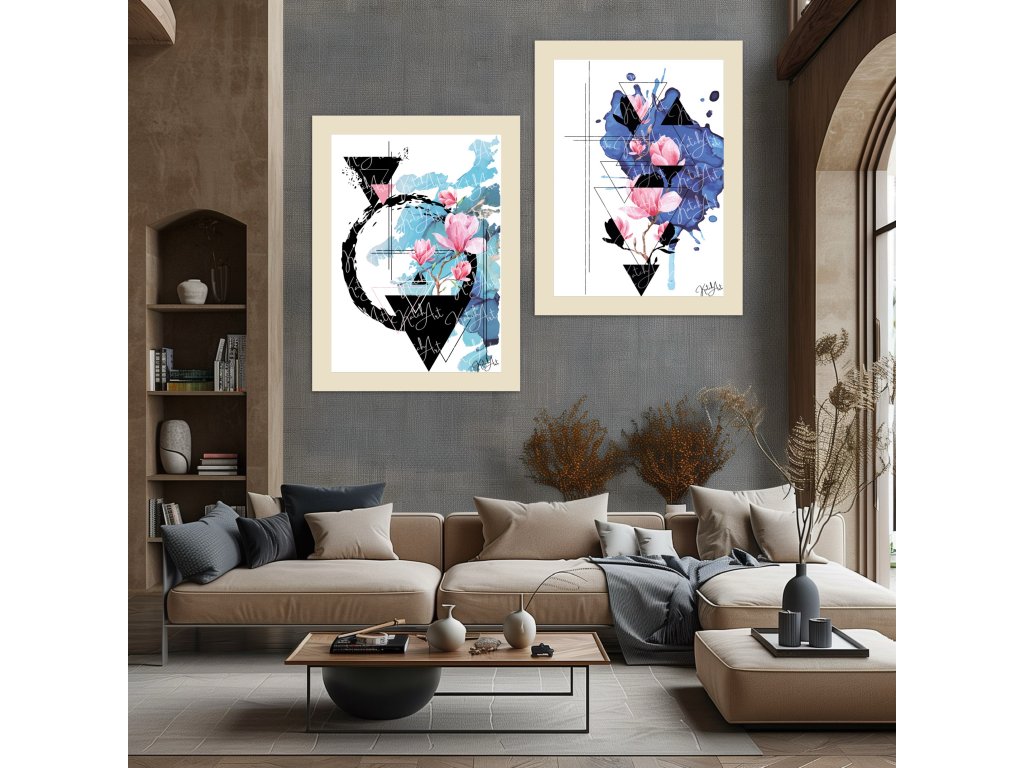 Geometrie v rozkvětu – digitální obraz, který propojuje svěží krásu květů a precizní linie geometrie. Dotek jemnosti v moderním stylu.