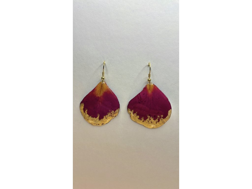Křehká elegance, která nikdy neuvadne. Tyto náušnice vznikly z pravých okvětních lístků, pečlivě zalitých v průzračném epoxidu a doplněných o háčky ze zlaté chirurgické oceli. Jemné zlaté detaily podtrhují přirozenou kresbu květu a dodávají šperku hřejivý, luxusní nádech.