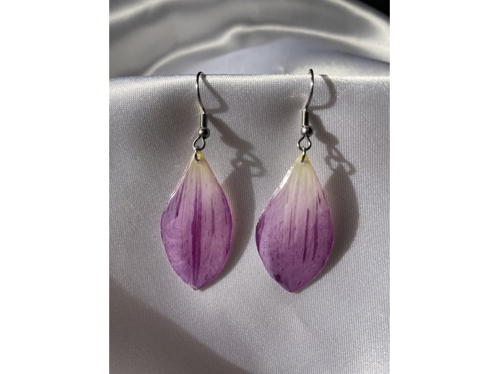 Náušnice jsou vyrobené z pravých, pečlivě sušených květů, zalitých v kvalitním šperkařském epoxidu. Nepoužívám žádné umělé náhražky – cílem je zachovat přirozený vzhled a autenticitu materiálů.