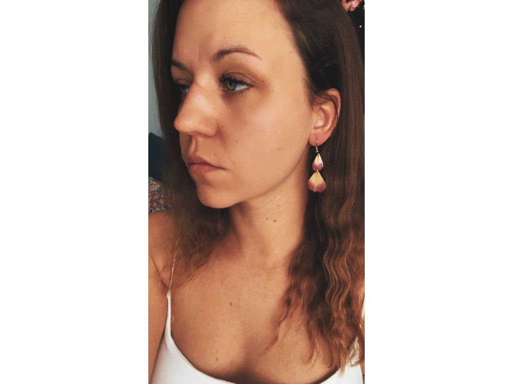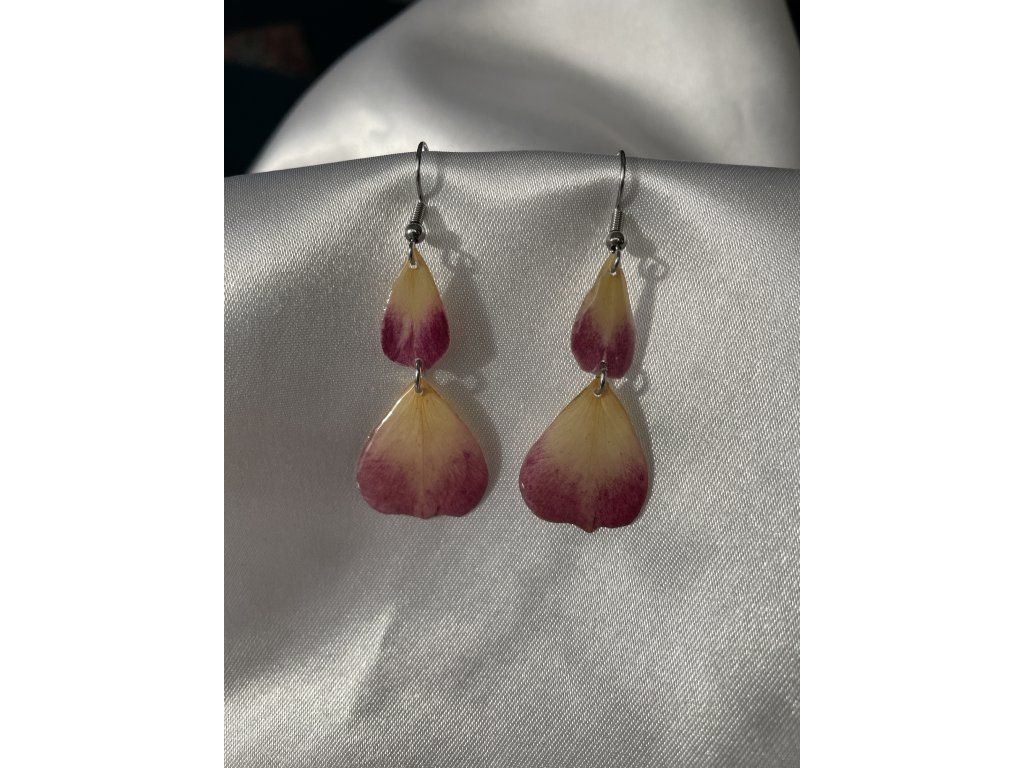 Náušnice jsou vyrobené z pravých, pečlivě sušených květů, zalitých v kvalitním šperkařském epoxidu. Nepoužívám žádné umělé náhražky – cílem je zachovat přirozený vzhled a autenticitu materiálů.