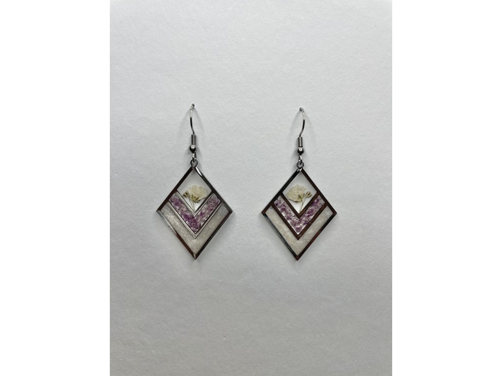 Náušnice jsou vyrobené z pravých, pečlivě sušených květů, zalitých v kvalitním šperkařském epoxidu. Nepoužívám žádné umělé náhražky – cílem je zachovat přirozený vzhled a autenticitu materiálů.