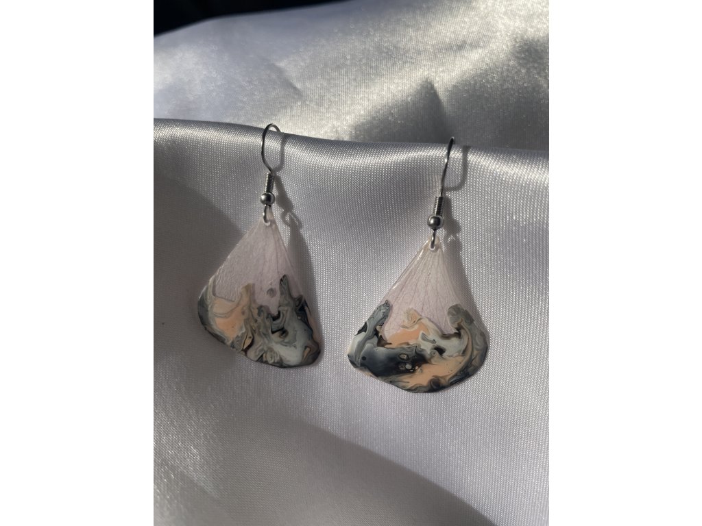 Autorské náušnice z orchideje a pouring akrylu, které propojují přírodu, design a poctivou ruční práci. Květy jsou zalité v čiré epoxidové pryskyřici, která zvýrazňuje jejich přirozenou strukturu i barvy.