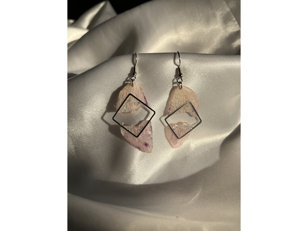 Náušnice jsou vyrobené z pravých, pečlivě sušených květů, zalitých v kvalitním šperkařském epoxidu. Nepoužívám žádné umělé náhražky – cílem je zachovat přirozený vzhled a autenticitu materiálů.