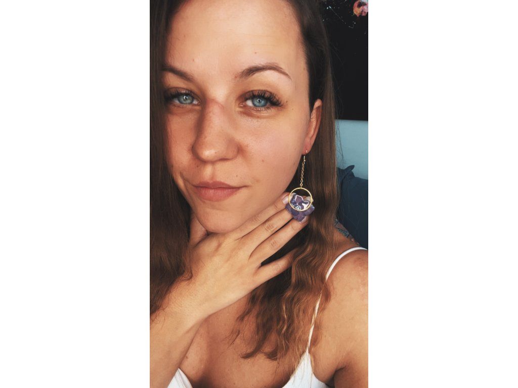 Náušnice jsou vyrobené z pravých, pečlivě sušených květů, zalitých v kvalitním šperkařském epoxidu. Nepoužívám žádné umělé náhražky – cílem je zachovat přirozený vzhled a autenticitu materiálů.