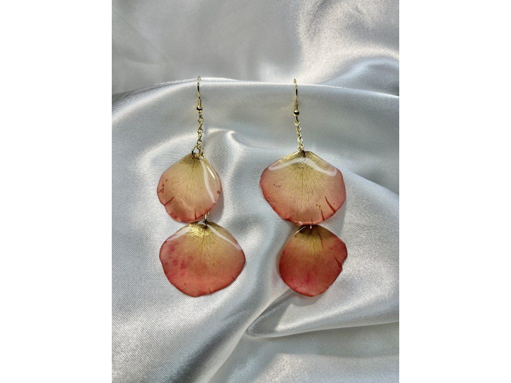 Autorské náušnice z růže, které propojují přírodu, design a poctivou ruční práci. Květy jsou zalité v čiré epoxidové pryskyřici, která zvýrazňuje jejich přirozenou strukturu i barvy.