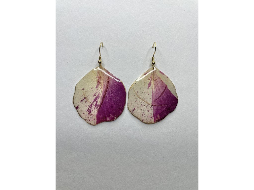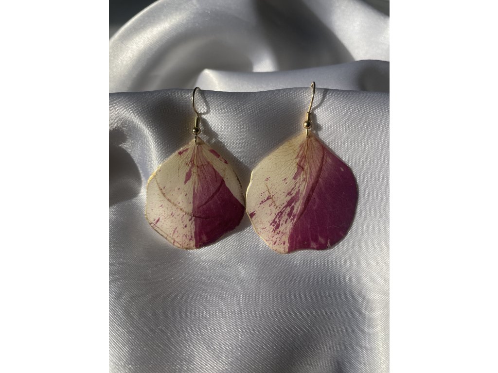 Náušnice jsou vyrobené z pravých, pečlivě sušených květů, zalitých v kvalitním šperkařském epoxidu. Nepoužívám žádné umělé náhražky – cílem je zachovat přirozený vzhled a autenticitu materiálů.