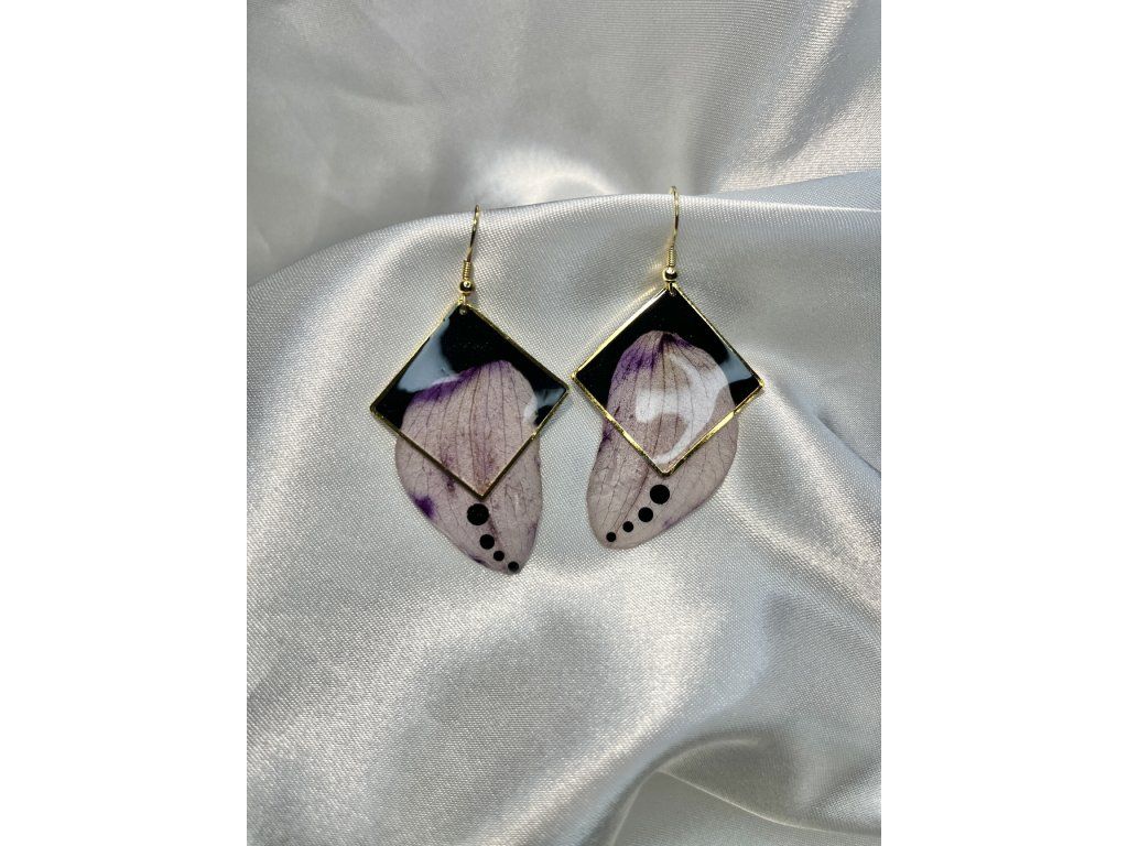 Náušnice jsou vyrobené z pravých, pečlivě sušených květů, zalitých v kvalitním šperkařském epoxidu. Nepoužívám žádné umělé náhražky – cílem je zachovat přirozený vzhled a autenticitu materiálů.