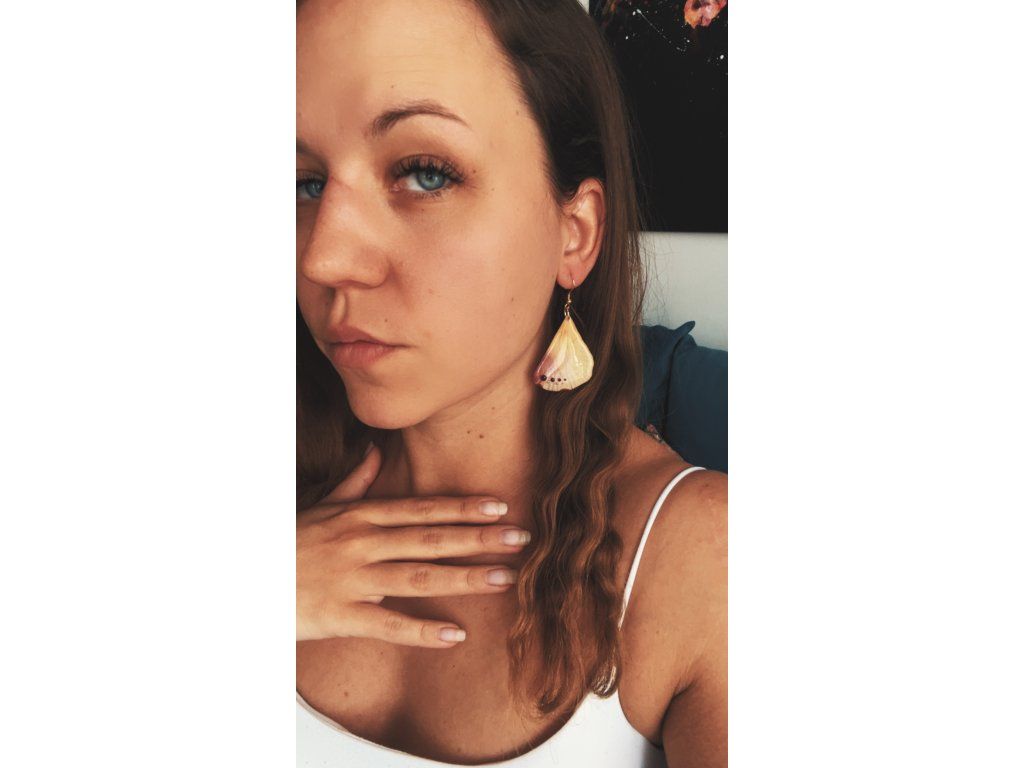 Náušnice jsou vyrobené z pravých, pečlivě sušených květů, zalitých v kvalitním šperkařském epoxidu. Nepoužívám žádné umělé náhražky – cílem je zachovat přirozený vzhled a autenticitu materiálů.